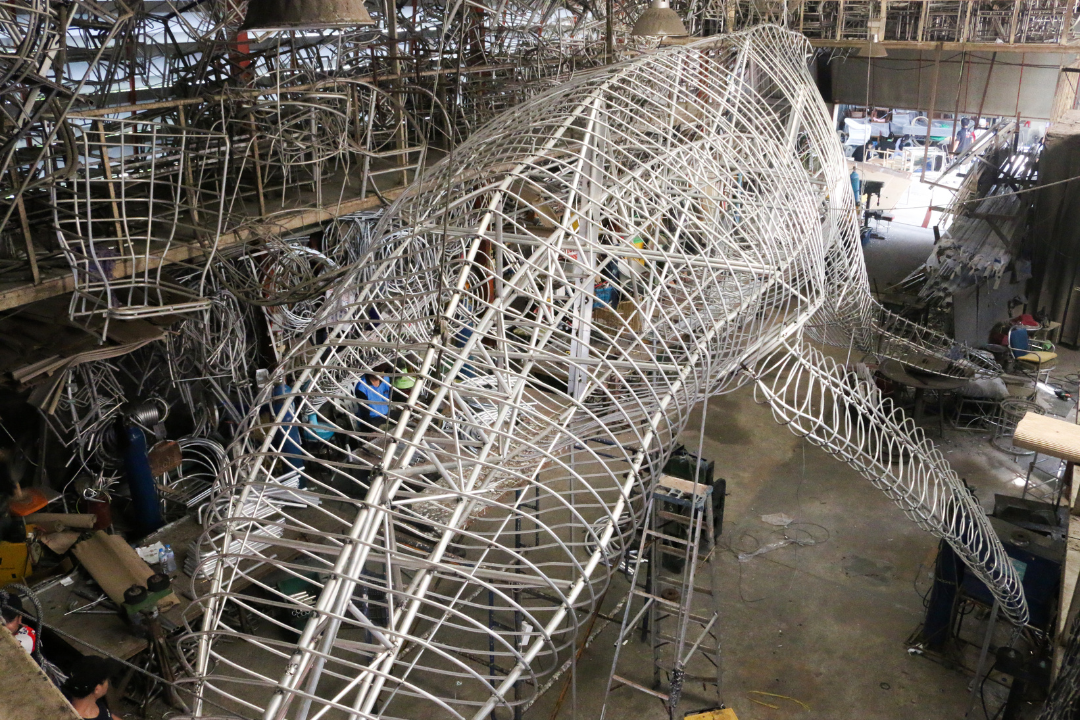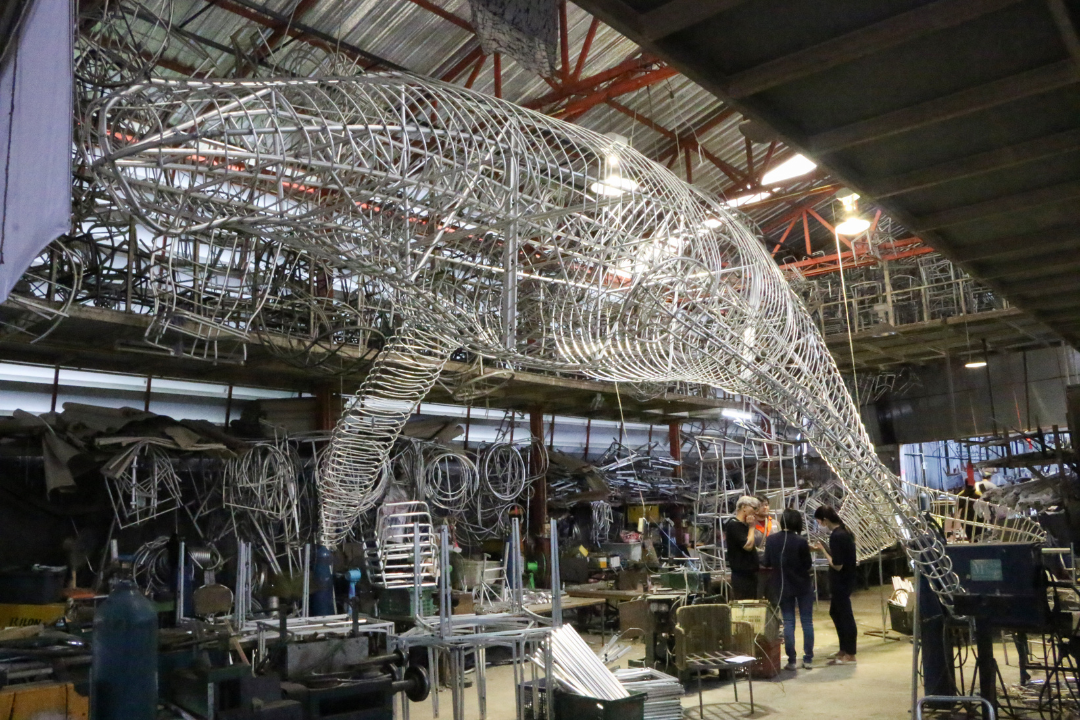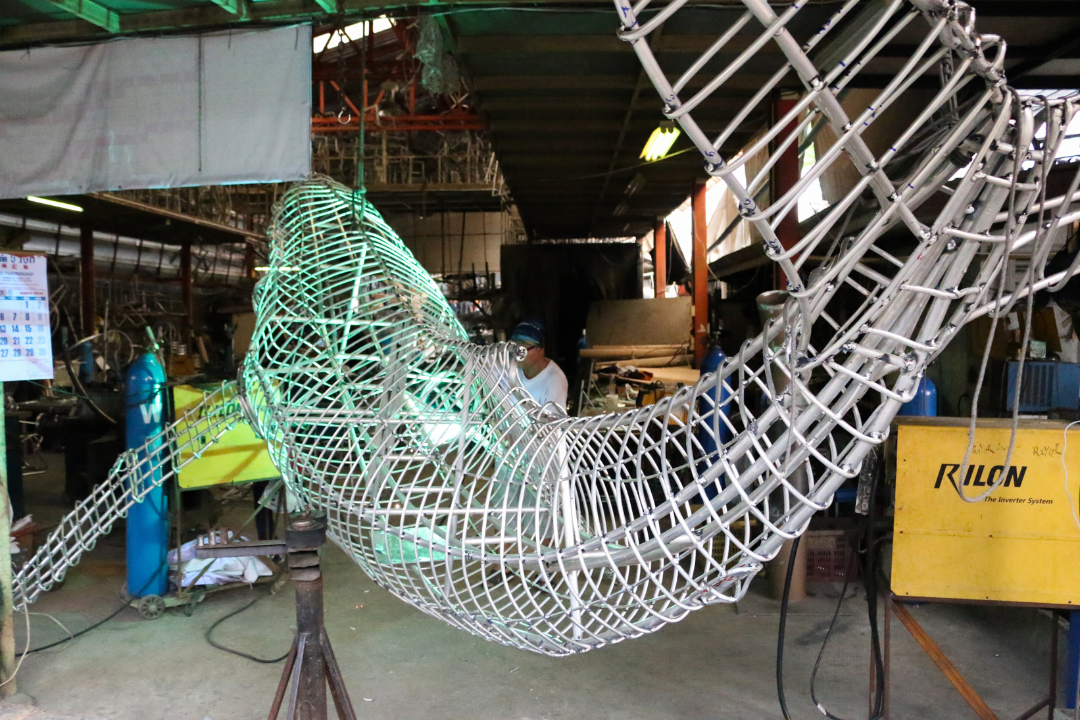 ขั้นตอนต่อไปเราจะอบสีวาฬที่ตัวใหญ่ขนาดนี้ยังไงล่ะ ทั้งการขนส่งที่ไม่เอื้ออำนวย ทีมช่างตัดสินใจ ตัดวาฬเป็นสามท่อน หัว ลำตัว และหาง เพื่อการทำงานที่สะดวกขึ้น ทุกเส้นสายและรายละเอียดของโครงโชว์ให้เห็นถึงความประณีตและคาวมตั้งใจของช่าง และที่สำคัญโชว์ความคิดสร้างสรรค์ของทีมเราที่เต็มที่กับขั้นตอนนี้มาก ๆ ค่ะ