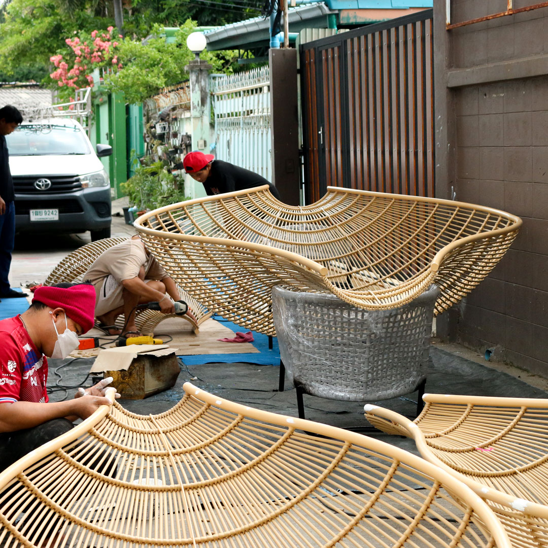เราทำทุกขั้นตอนด้วยความตั้งใจทั้งออกแบบ ทำโครง สาน และติดตั้ง ผสานธรรมชาติของงานฝีมือให้ลอยฟุ้งในตัวร้าน สร้างความประทับใจให้กับลูกค้าที่มา ได้สัมผัสกับงานฝีมือและหวายเทียมเป็นเอกลักษณ์ของเราชาว ออล เมคเกอร์ ดีไซน์