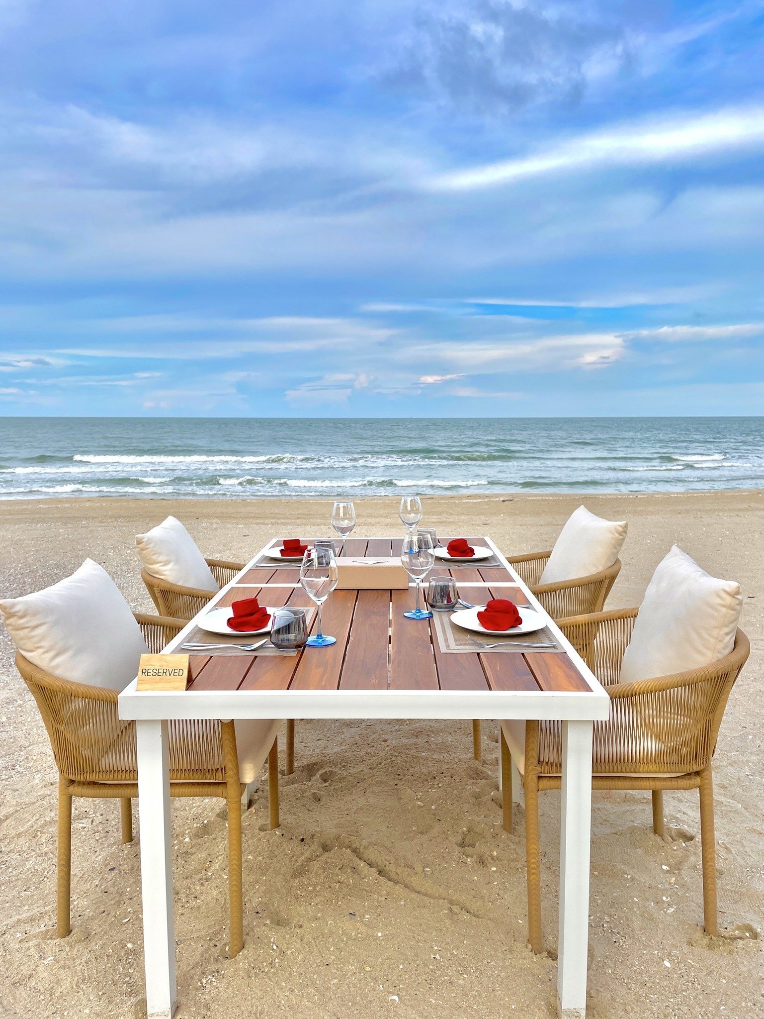 ขนาด : เก้าอี้ W60xD60xH75 cm, โต๊ะท็อปไม้สัก W100xD100xH75 cm